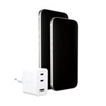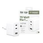 empower - Cestovný adaptér Grand Prix 2x USB-C/USB-A, GaN, 70 W PD, striebornobiela