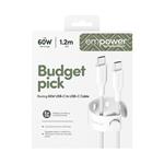 empower - Kábel USB-C, 60 W, Racing, 1,2 m, striebornobiela