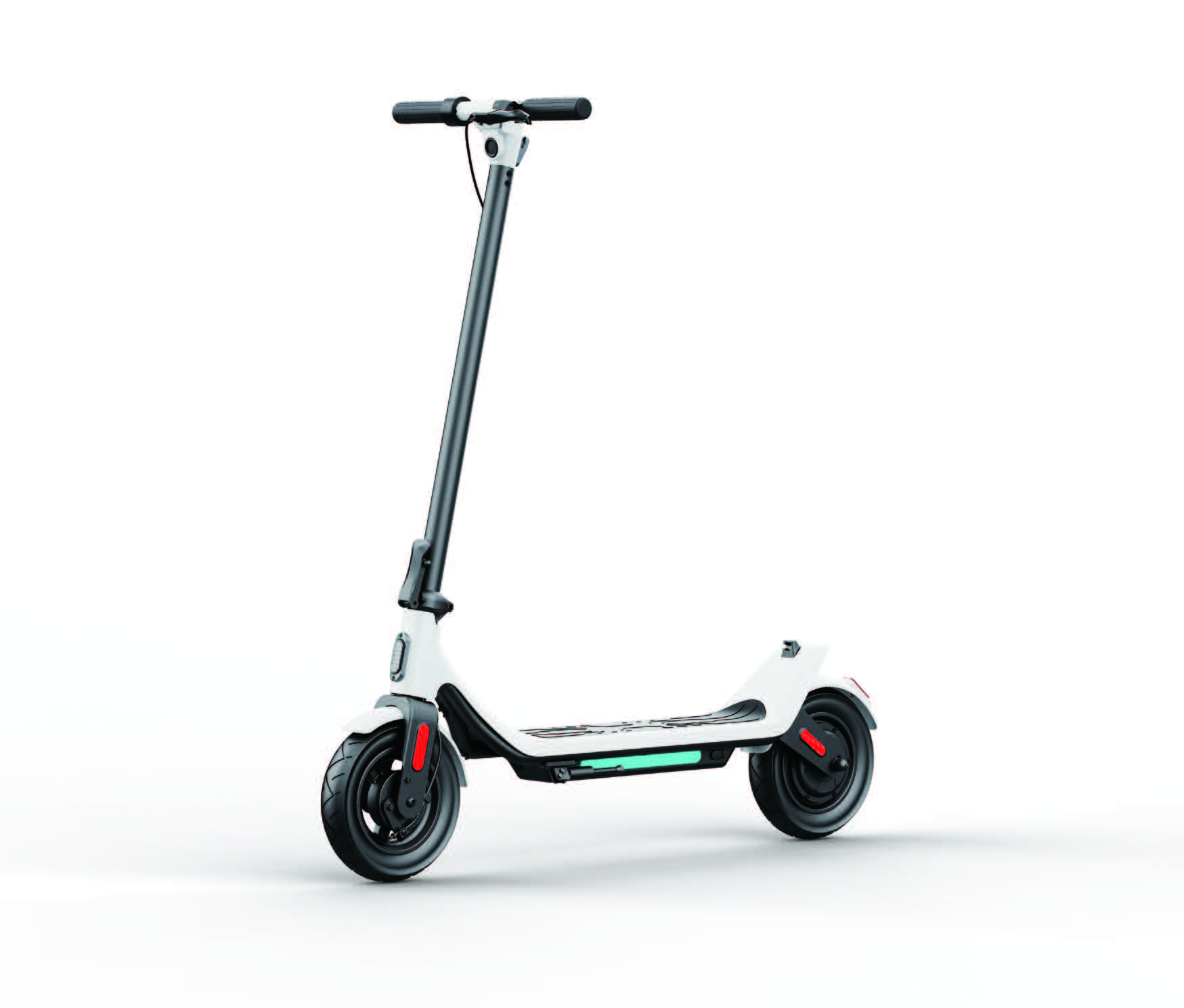 Zadné červené svetlo bliká pri brzdení. Štýlovým detailom je tiež postranné LED osvetlenie na nášľapnej ploche, ktoré bliká pri odbočovaní doprava alebo doľava. O krátku brzdnú dráhu sa stará elektromotorická a bubnová brzda.