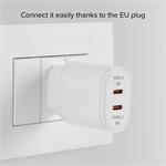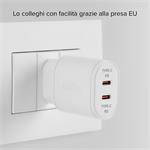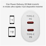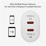 Cestovný adaptér s technológiou Power Delivery ponúka výkon 20 W. Dokáže napájať všetky kompatibilné zariadenia, čím zabezpečuje rýchle a bezpečné nabíjanie bez prehriatia, prebíjania alebo skratu zariadení. Smartfón a tablet kompatibilný s týmto systémom napájania sa nabije za 45, resp. 90 minút. Vďaka dvom výstupom USB-C môžete nabíjať dve zariadenia súčasne.