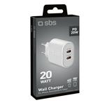 SBS - Cestovný adaptér 2x USB-C Power Delivery, 20 W, biela