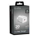 SBS - Cestovný adaptér NanoTube USB-C, GaN, 20 W, PD, biela