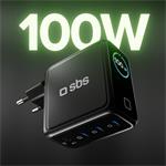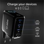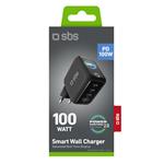 SBS - Cestovný adaptér Smart GaN, PD, 100 W, 3x USB-C/USB-A, čierna