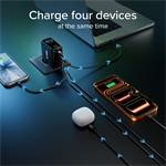 Cestovný adaptér Smart značky SBS, je ideálnym riešením pre rýchle a efektívne nabíjanie viacerých zariadení naraz. Vďaka výkonu až 100 W dokáže napájať smartfóny, tablety, slúchadlá, powerbanky a dokonca aj notebooky. Adaptér je vybavený tromi USB-C Power Delivery portami a jedným USB-A portom s technológiou Adaptive Fast Charge, čo umožňuje nabíjať až štyri zariadenia súčasne. Je praktický doma, v kancelárii aj na cestách, pričom šetrí čas aj priestor.