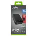 SBS - PowerBank 20000 mAh 20 W, PD, Compact, USB-C/USB-A, čierna