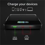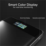 Integrovaný LCD displej zobrazuje presné údaje o zostávajúcej kapacite, aktuálnom výkone, aktívnom porte a stave nabíjania. Okrem toho ponúka informácie o vnútornej teplote a odhadovanom čase nabíjania pre powerbanku aj pripojené zariadenia. Vďaka týmto funkciám máte úplnú kontrolu nad spotrebou energie a bezpečnosťou počas nabíjania.