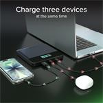 Powerbanka je vybavená USB-C konektorom s technológiou Power Delivery a výkonom až 100 W, čo umožňuje mimoriadne rýchle nabíjanie notebookov, MacBookov, ultrabookov či prenosných herných konzol. USB-A port s výkonom 22,5 W je ideálny na nabíjanie smartfónov, slúchadiel a ďalšieho príslušenstva. Vďaka kapacite 20000 mAh dokáže zariadenie nabiť smartfón niekoľkokrát, udržať tablet v prevádzke celý deň alebo napájať notebook počas práce na cestách. Navyše umožňuje súčasné nabíjanie až troch zariadení a vďaka nepretržitému monitorovaniu teploty zaručuje maximálnu bezpečnosť pri každom použití.