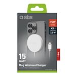 SBS - Univerzálna magnetická bezdrôtová nabíjačka, 15 W, biela