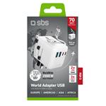 SBS - Univerzálny cestovný adaptér EU/UK/US/ASIA, 2x USB-A/3x USB-C, integrovaný kábel, biela